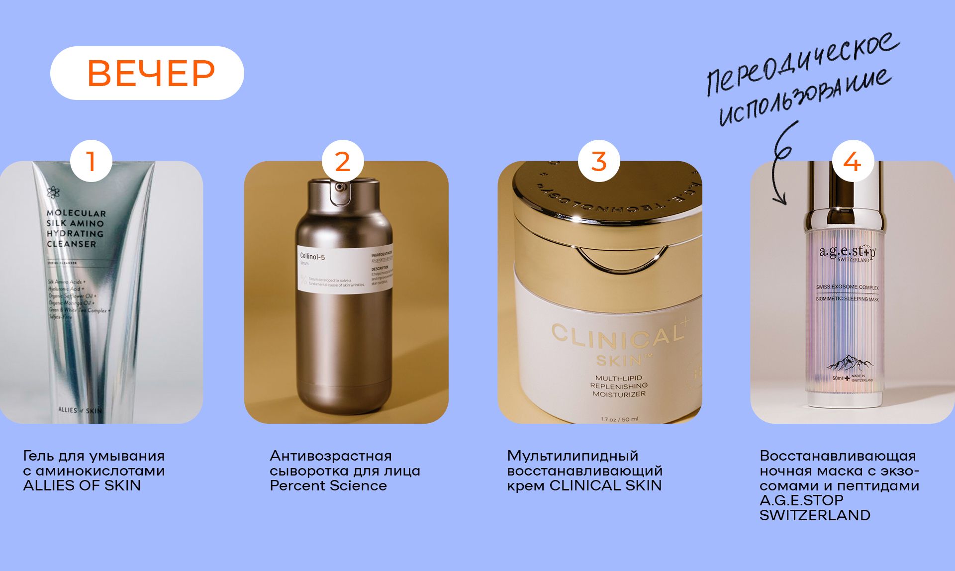 Вечерний уход ориентирован на восстановление и модуляцию.