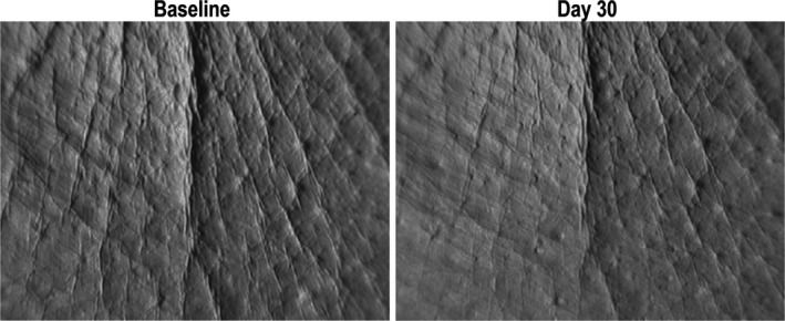 Фото проблемных участков кожи на исходном уровне и на 30-й день после месячного