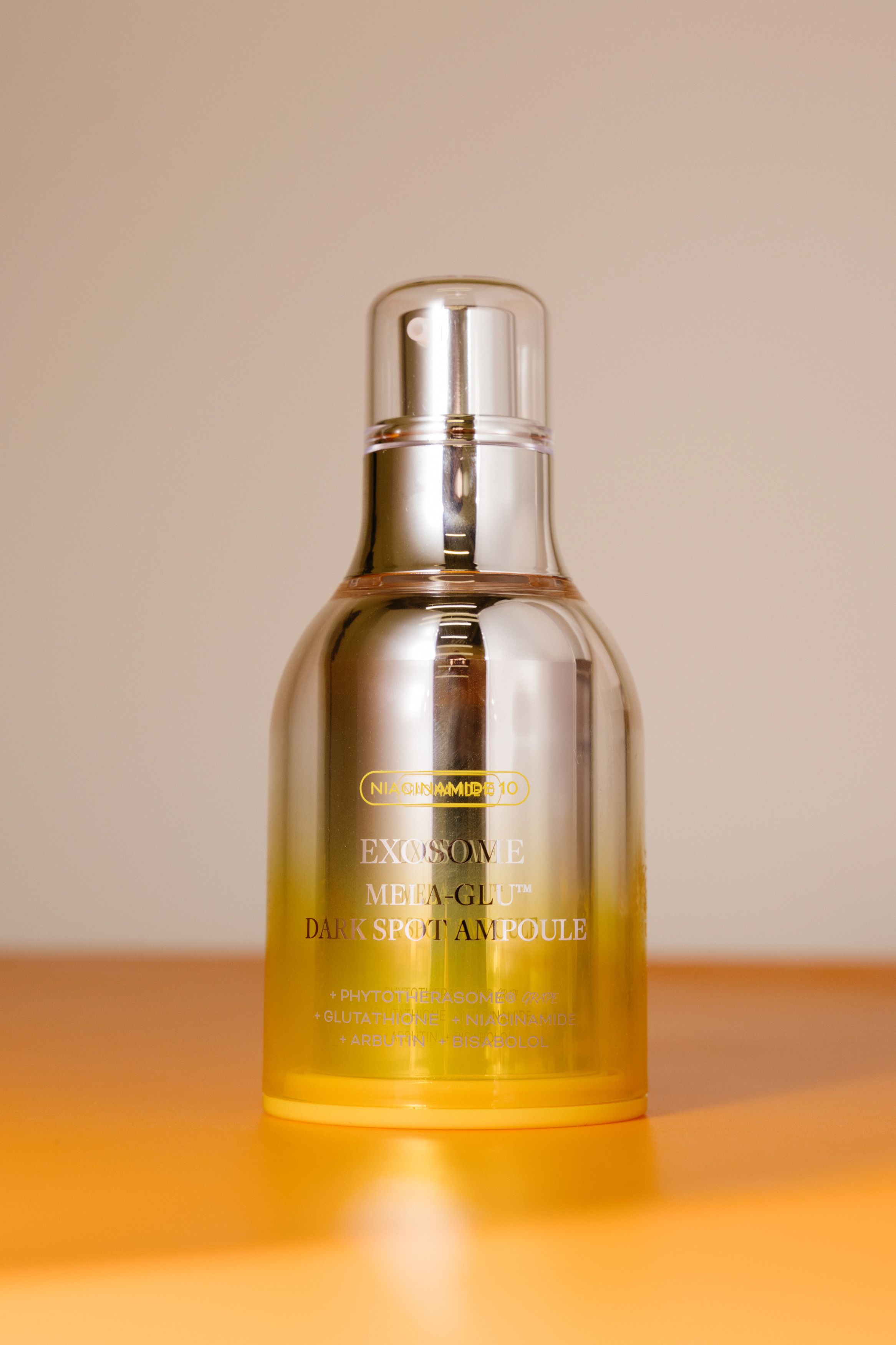 Осветляющая сыворотка со стволовыми клетками винограда, инкапсулированными в экзосомы для максимального проникновения, в сочетании с 10% ниацинамидом, 2% арбутином и глутатионом направлена на коррекцию пигментации и выравнивание тона кожи.