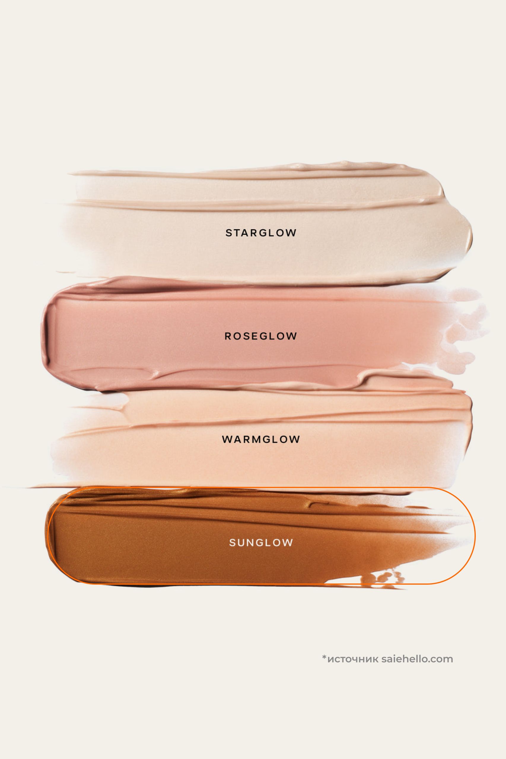 Sunglow — насыщенный оттенок с тёплым бронзовым сиянием. Он особенно выразительно раскрывается на смуглой и загорелой коже.