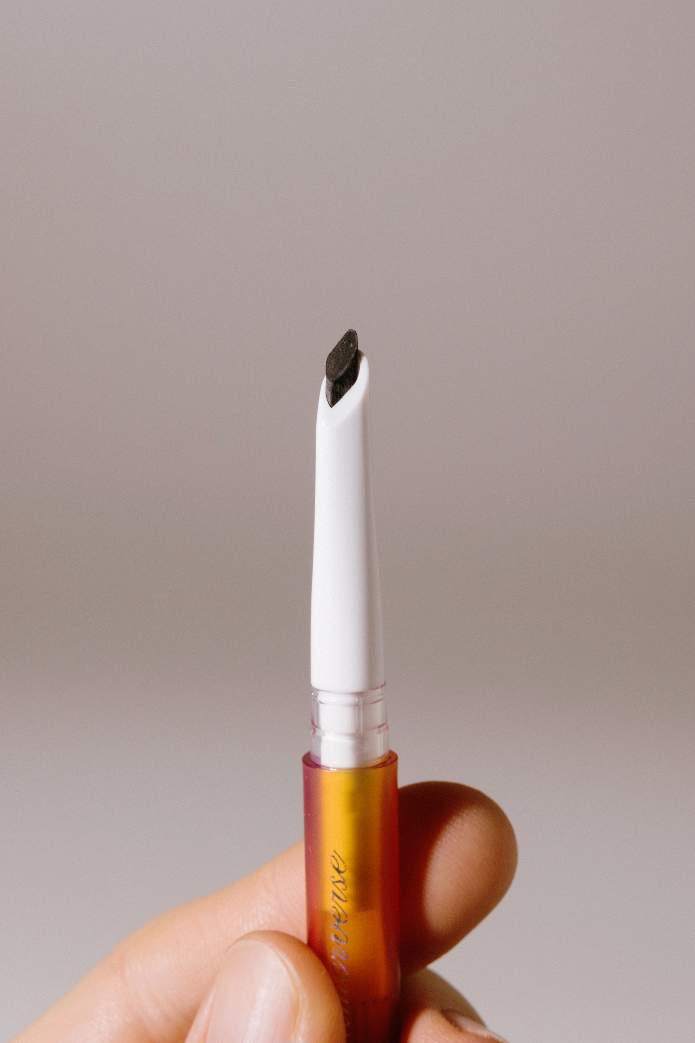 - Благодаря скошенному треугольному грифелю карандаш легко заполняет большие пробелы и рисует отдельные волоски, делая брови визуально более густыми.