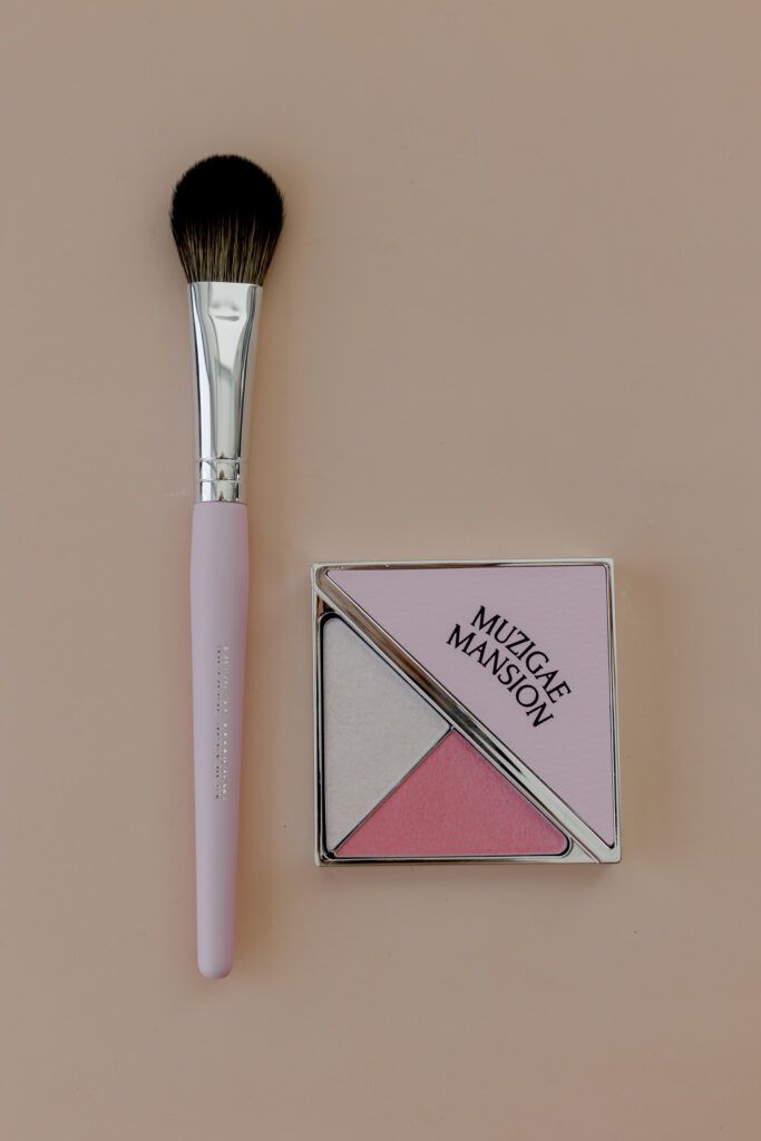 Лимитированный набор 001 Чистый Розовый Румяна & Хайлайтер с кистью для нанесения MUZIGAE MANSION Dual Cheek Beam 001 Pure Pink Blush & Highligter Brush