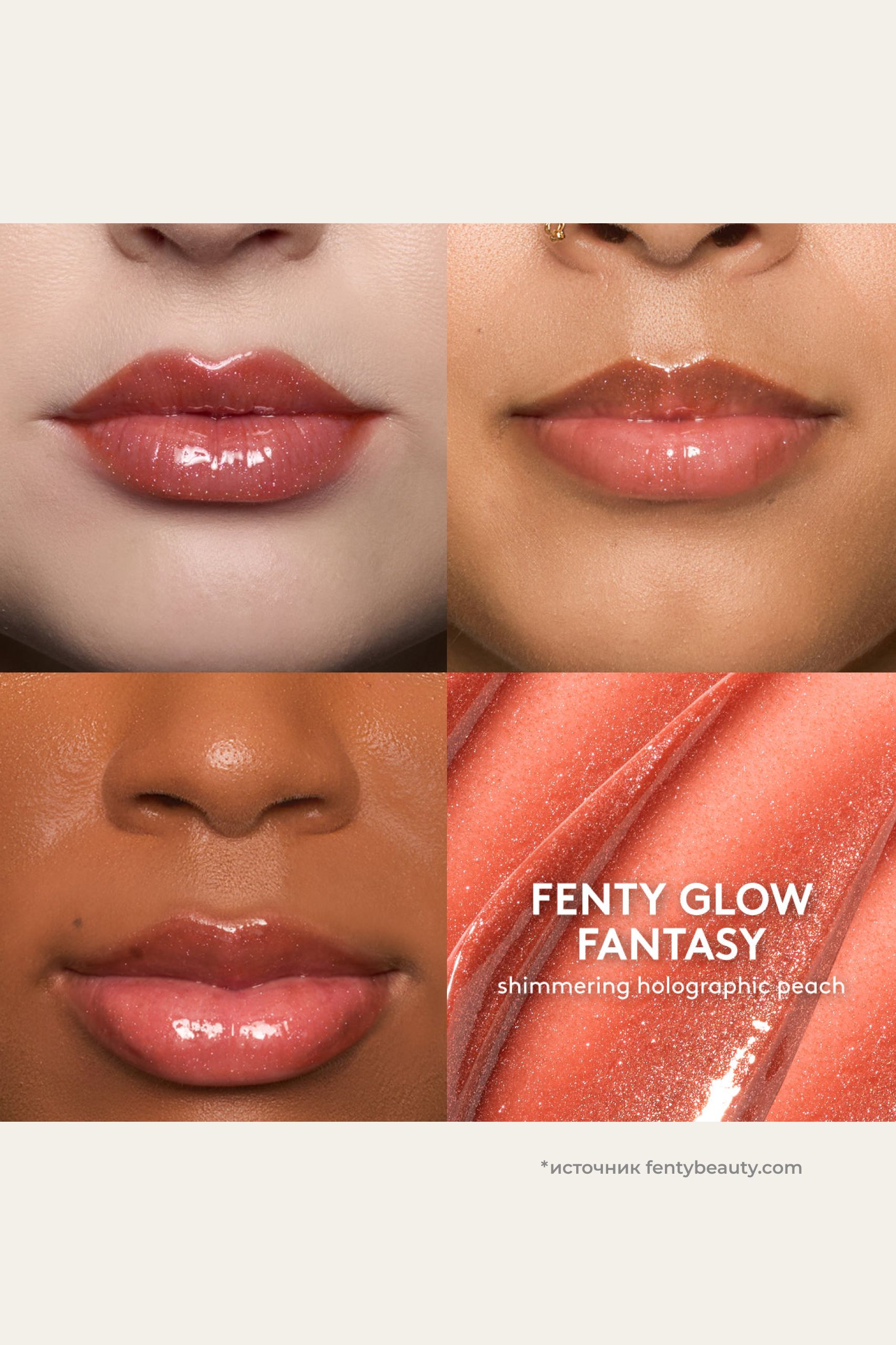 Fenty Glow Fantasy — классический голографический персиковый оттенок с интенсивным мерцанием.
