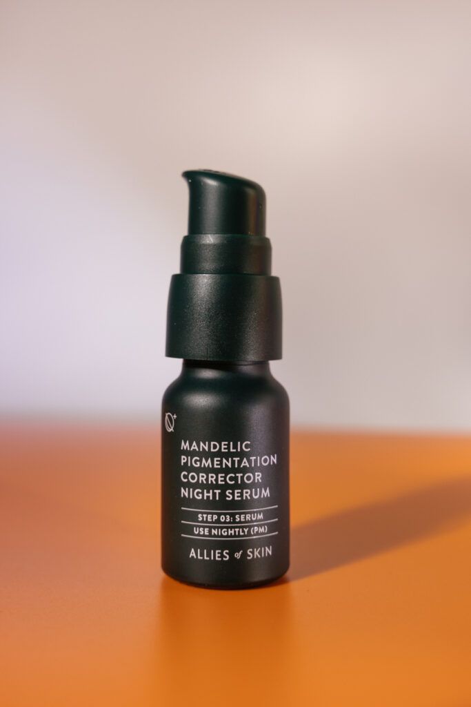 Как и свойственно всем формулам бренда Allies of Skin, в сыворотке Mandelic Pigmentation Corrector Night фокус направлен не только на работу кислотного коктейля против несовершенств кожи, но и включает в себя 8 отбеливающих компонентов, 7 антиоксидантов и пептидный комплекс, которые останавливают преждевременное старение кожи и устраняют уже имеющиеся возрастные изменения.