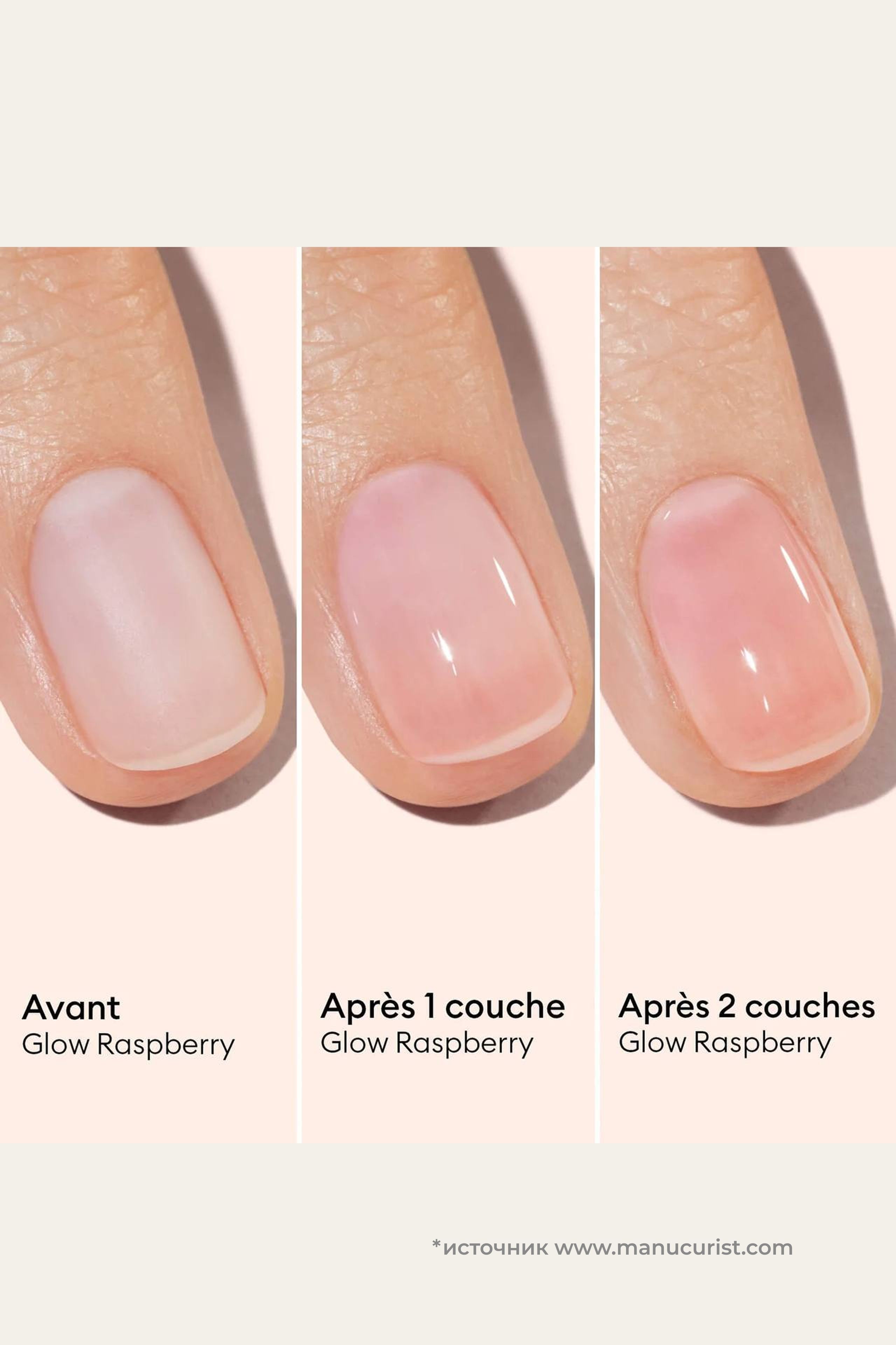 Raspberry — нежный персиково-розовый оттенок с полупрозрачным эффектом.
