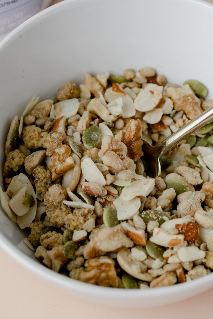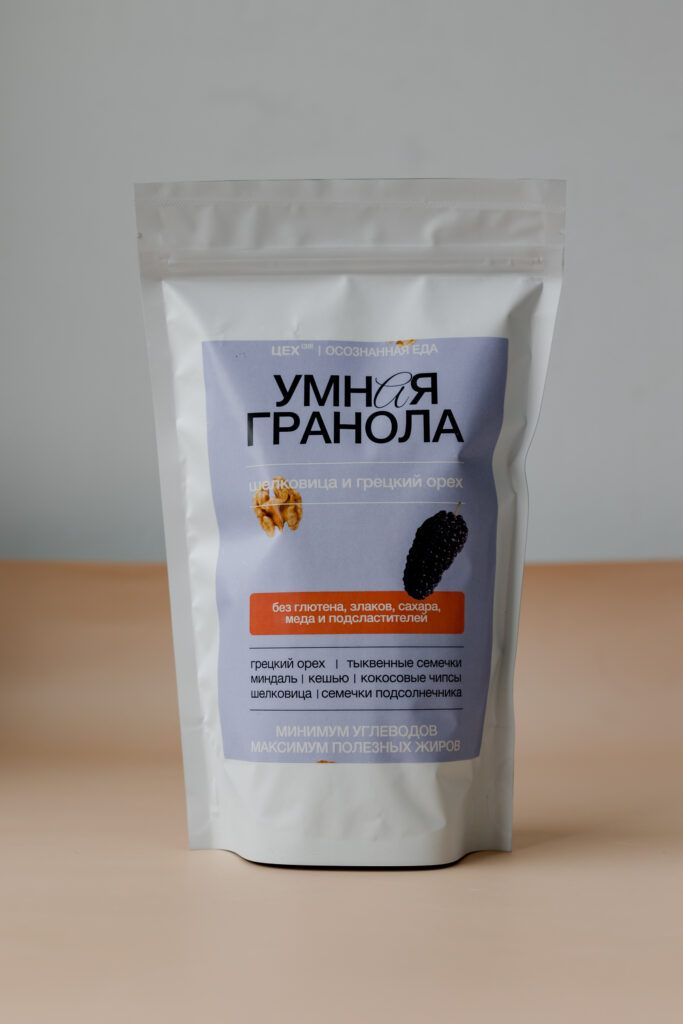 Умная ореховая гранола с грецким орехом и ягодами белой шелковицы без злаков, глютена, сахара и лактозы прекрасно дополнит завтрак, станет полезным, питательным перекусом или вкуснейшим десертом для всей семьи. Гранола изготовляется уникальным способом путем активации, при которой орехи и полезные семена промываются и вымачиваются, после чего подвергаются длительной бережной сушке при низких температурах, максимально сохраняя все витамины, а также полезные макро- и микроэлементы. Процесс происходит без использования масла.